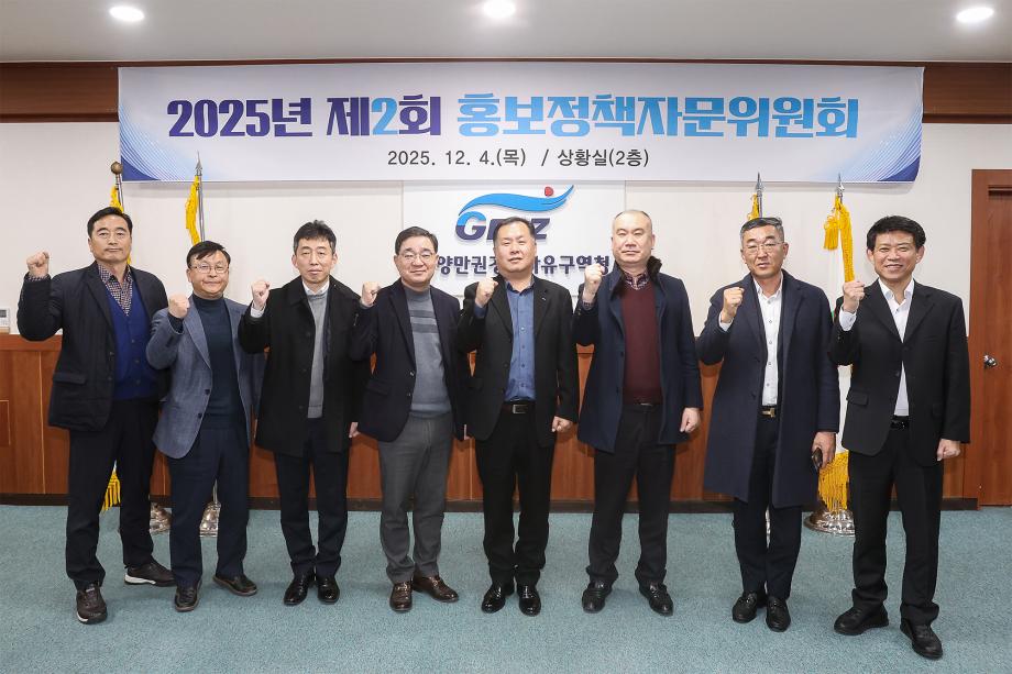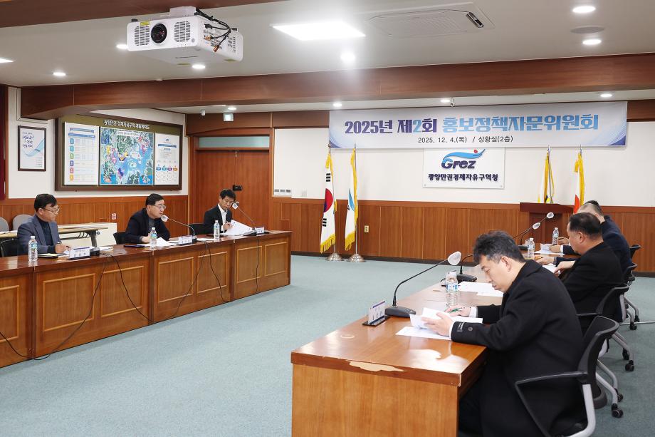 광양만권경제자유구역청(청장 구충곤, 이하 광양경자청)은 12월 4일 청사 2층 상황실에서 「2025년 제2회 홍보정책자문위원회」를 열고 올해 홍보정책 추진성과를 점검하는 한편, 2026년 신규 홍보시책과 홍보 인프라 개선 방향을 논의했다.