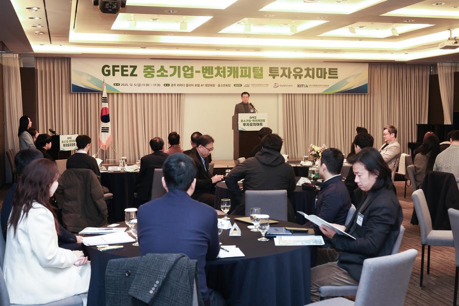광양만권경제자유구역청(청장 구충곤, 이하 광양경자청)은 12월 5일 광주 라마다플라자 호텔에서 ‘2025년 전남 중소기업-벤처캐피털 투자유치마트’를 열어 지역 중소기업의 성장자금 조달을 지원하고 GFEZ 투자환경을 직접 알리는 자리를 마련했다고 밝혔다.