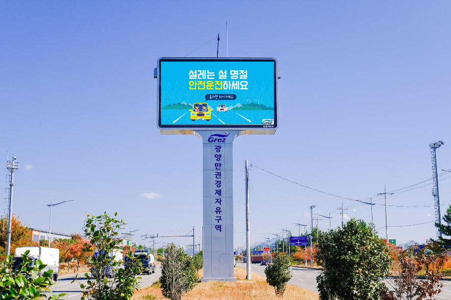 광양경자청은 2022년 11월부터 대형 전광판을 통해 지역 개발 소식과 공공정보를 주민에게 전달해 왔으며, 특히 명절이나 휴가철과 같이 방문객이 증가하는 시기에는 공익성과 실효성이 높은 안전 콘텐츠를 우선적으로 송출하고 있다.