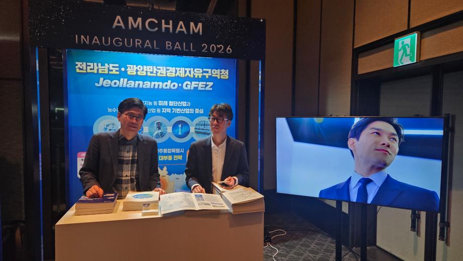 광양만권경제자유구역청(청장 구충곤, 이하 광양경자청)은 전라남도와 함께 지난 20일 서울 그랜드 하얏트 호텔에서 열린 ‘주한미국상공회의소(암참, AMCHAM) 이사진 취임식(Inaugural Ball 2026)’에 참가해 미국계 글로벌 기업을 대상으로 투자유치 활동을 전개했다.